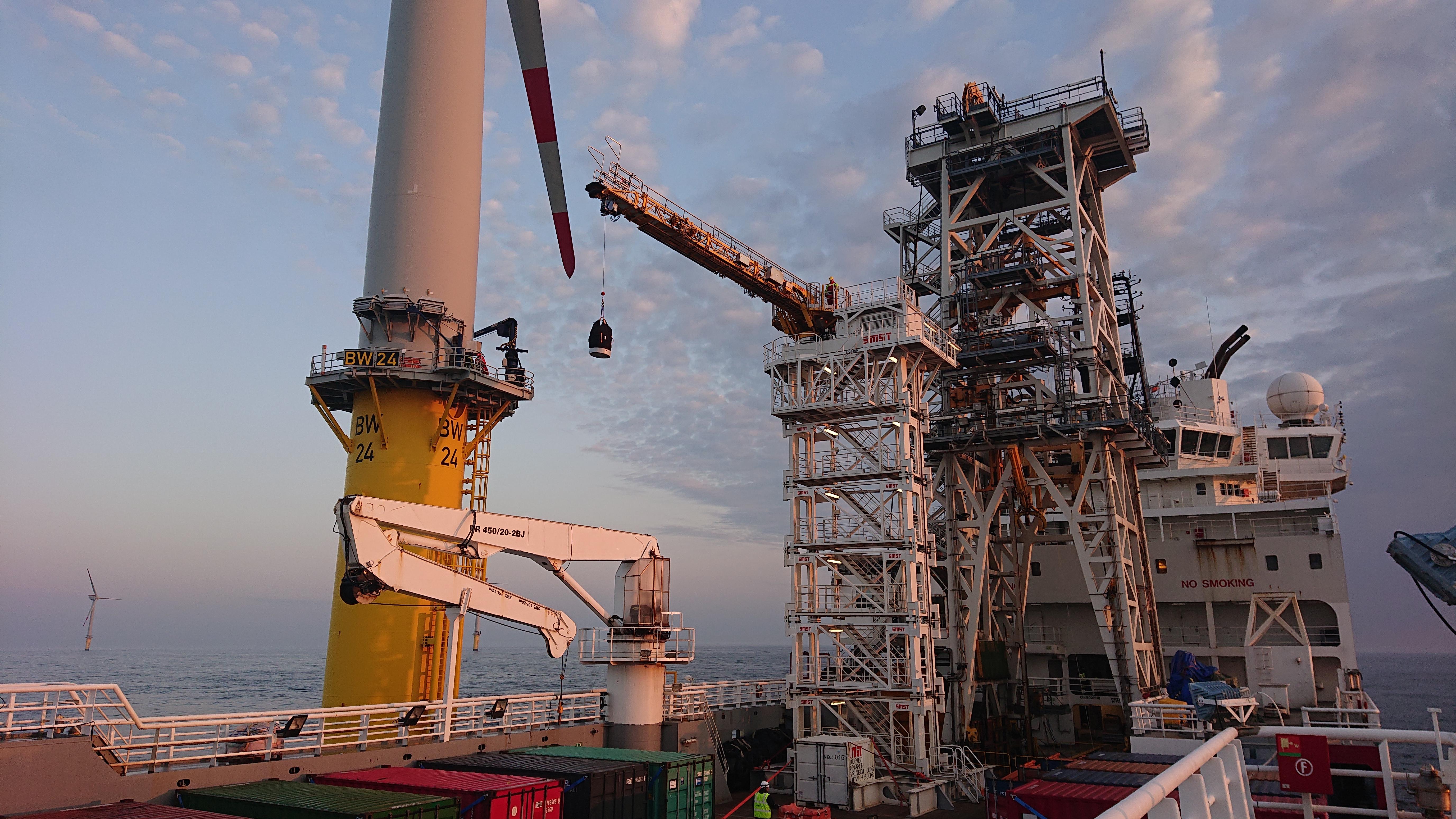 Recently, SMST has signed a contract with DOF Subsea for the deployment of a motion compensated gangway from the SMST rental fleet. The contract marks SMST’s first delivery of walk-to-work equipment to the Norwegian offshore company. Since a few weeks, DOF is already operating the gangway on board their multipurpose vessel Skandi Constructor, ensuring safe and efficient walk-to-work of their crew and cargo in the Global Tech 1 offshore wind farm.
