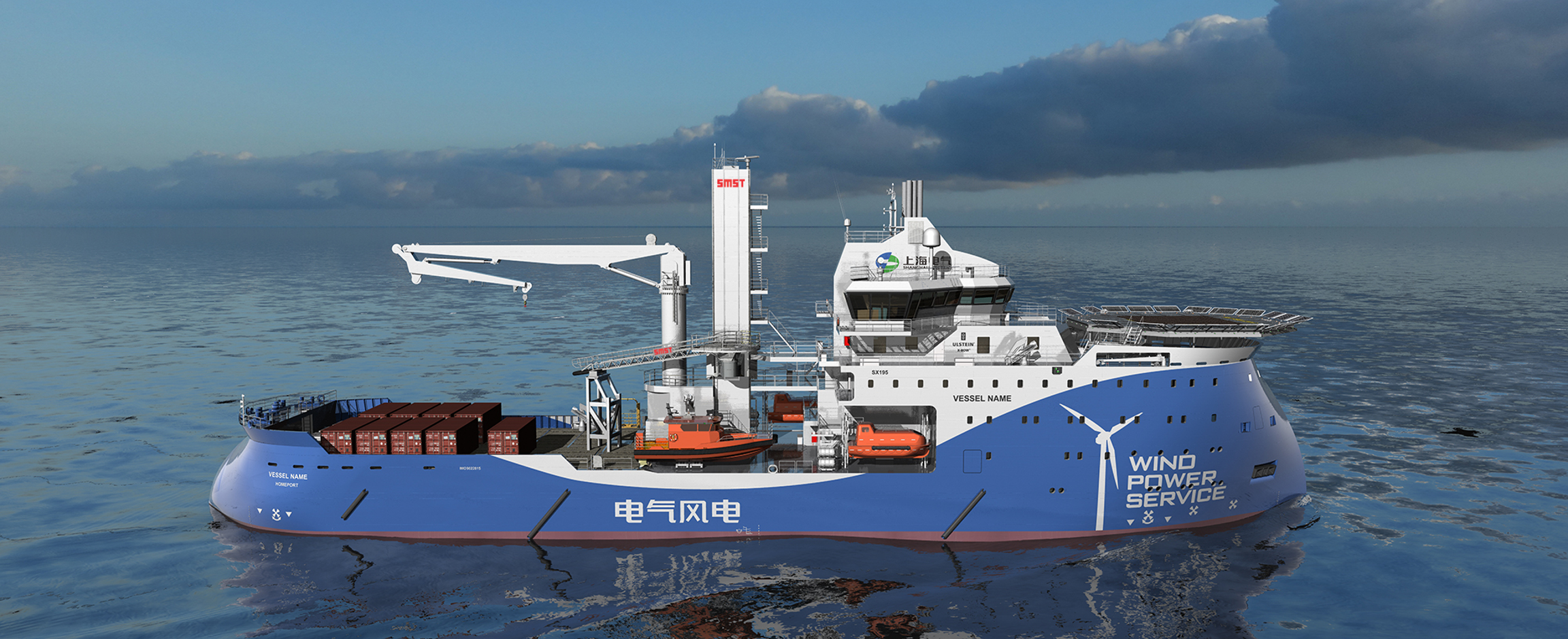 Recently, shipyard ZPMC in China has awarded SMST the contract for the delivery of an Access & Cargo Tower with motion compensated gangway, the so-called Telescopic Access Bridge L-Series, for the new build SOV of Shanghai Electric Windpower Group, Ulstein design SX195 with accommodation for 100 POB. The Chinese shipowner, that is the largest offshore wind turbine supplier in the country, will contract the SOV for maintenance of wind turbines in China’s Jiangsu and Fujian province.