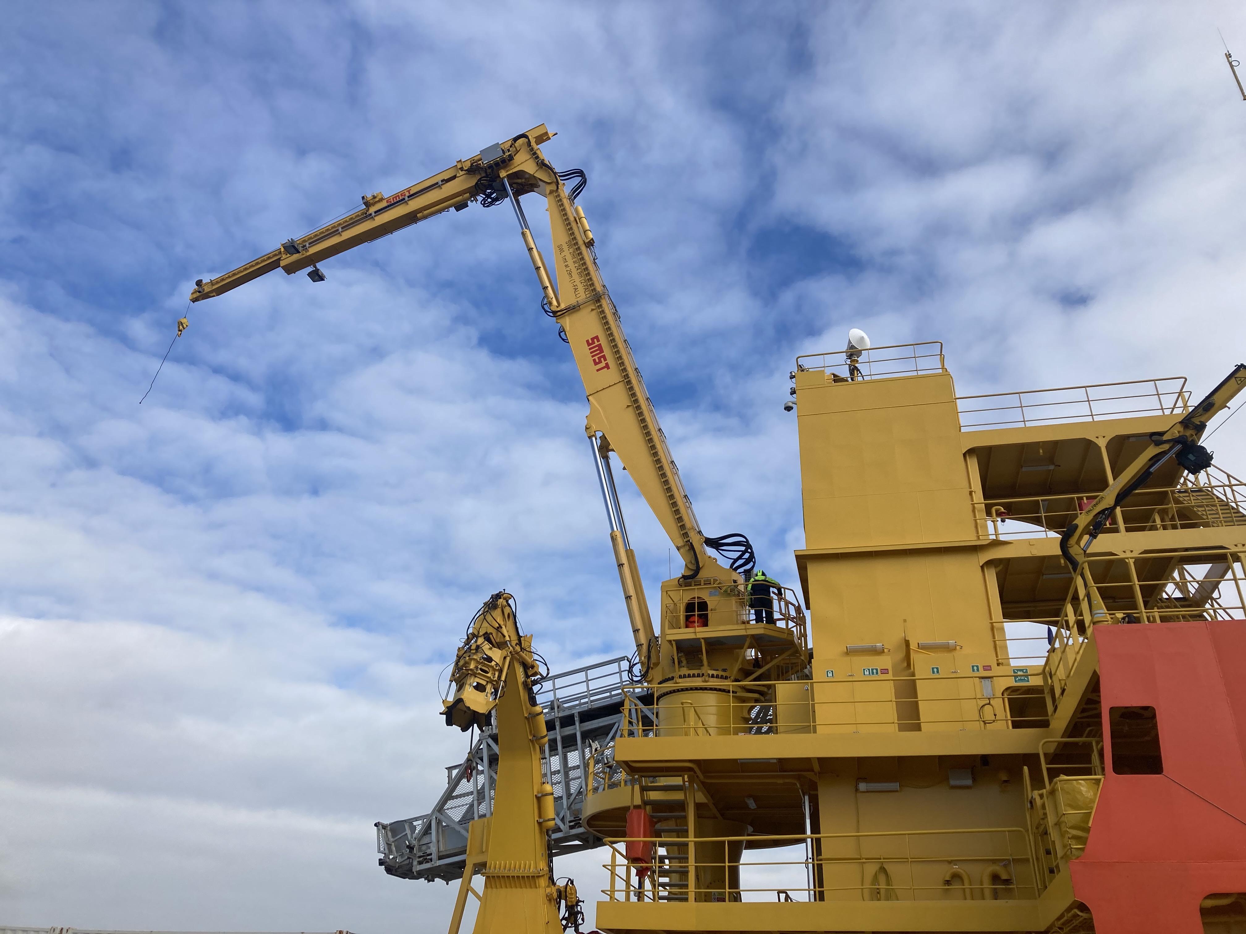 Being moored in Den Helder last week, it was a perfect timing for the yearly inspection of the SMST 3D motion compensated crane on board the Edda Passat, Service Operation Vessel of Østensjø Rederi. During this inspection our service engineers make sure that the crane remains in top condition for safe and efficient operations. Our team was happy to see the 3D crane, that is used daily, is very well looked after by the crew of Østensjø!